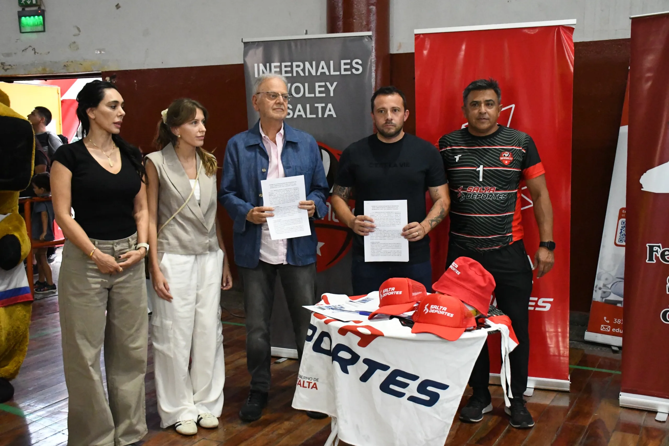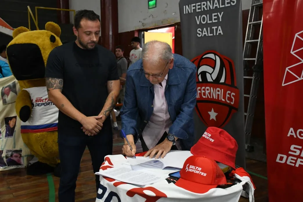 Esta tarde, se firmó un convenio de cooperación en el Delmi, con los Infernales, equipo de Voley que representa a Salta y con la Agencia de Deportes del municipio y de la Provincia, donde también participaron miembros de PAVICEI (Padres de Víctimas de Conductores Ebrios e Irresponsables).
