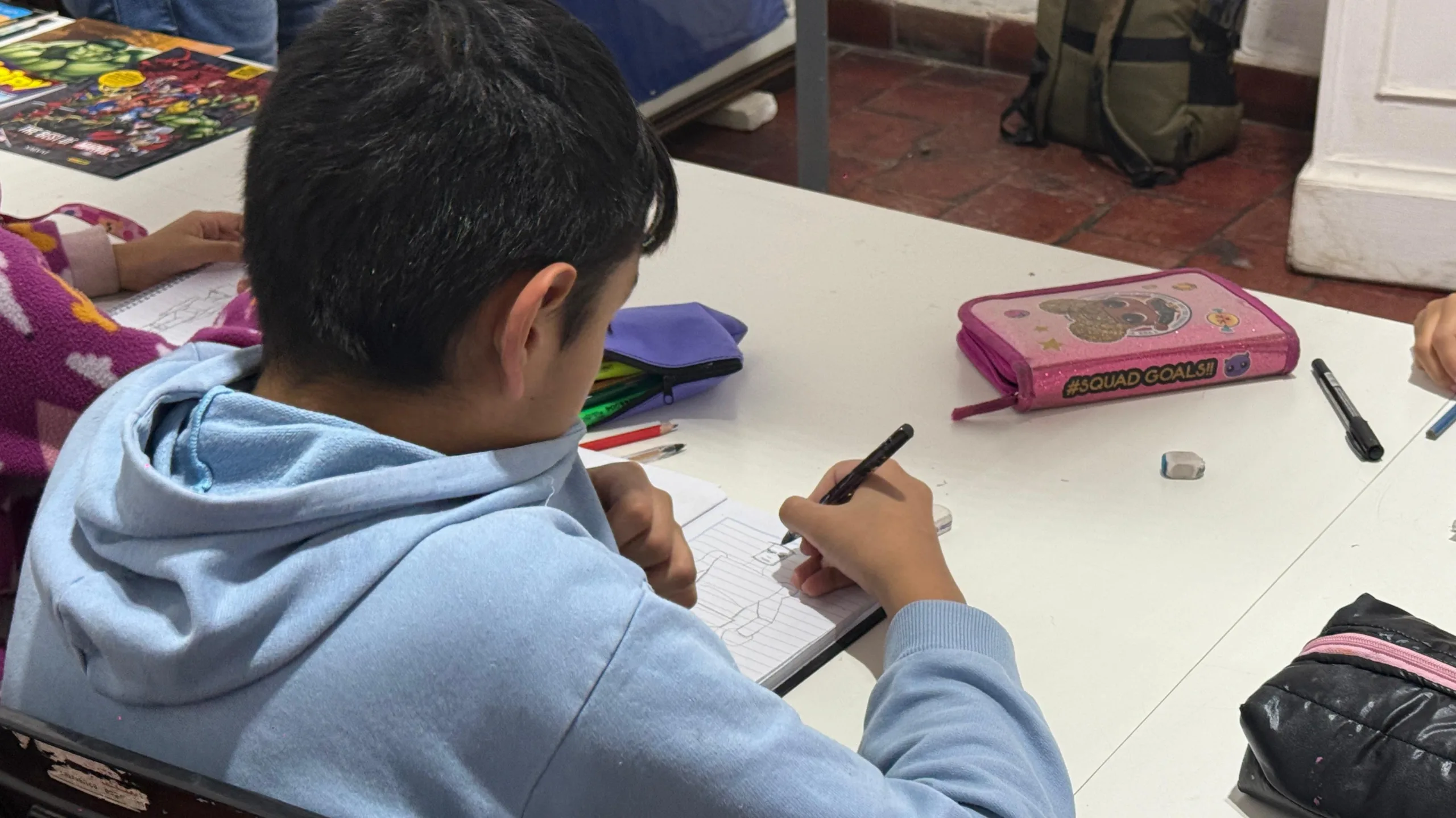 En este sentido, el profe Mendoza destacó: “Es un taller de historieta gratuito donde trabajamos distintos formatos como el cómic y el manga, pensado para chicos desde los 8 años en adelante. Tenemos dos comisiones según las edades y la idea es que puedan aprender, crear y desarrollar sus propias historias. Son clases con mucho entusiasmo por parte de los chicos. Con un lápiz y una hoja en blanco se puede llegar a crear una obra. También proyectamos que, a fin de año, los participantes puedan mostrar sus producciones en una muestra e incluso avanzar en una pequeña publicación con las historias que vayamos construyendo”.