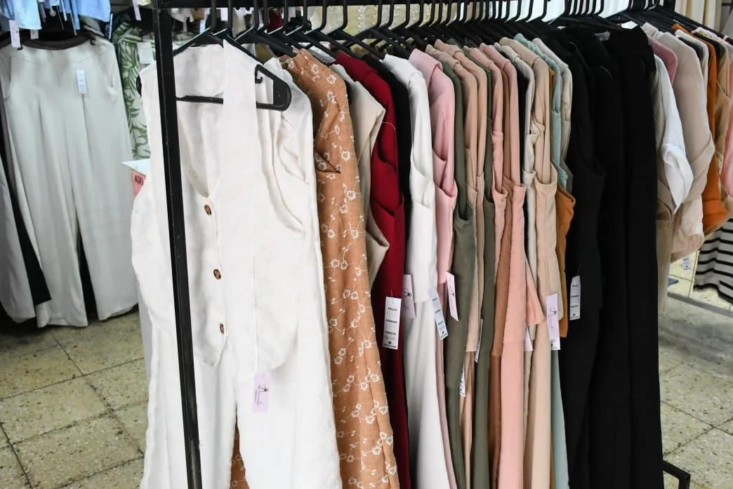 En ropa para mujeres, se pueden encontrar las siguientes promociones: conjuntos pantalón y chaleco de lino desde $25.000, remeras de lino desde $20.000, remeras de algodón peinado desde $18.000, remeras de broderie $22.000, vestidos de broderie y lino desde $28.000, monitos en broderie y lino desde $28.000, pantalones palazzo de lino sastrero tendencia v/colores desde $22.000.