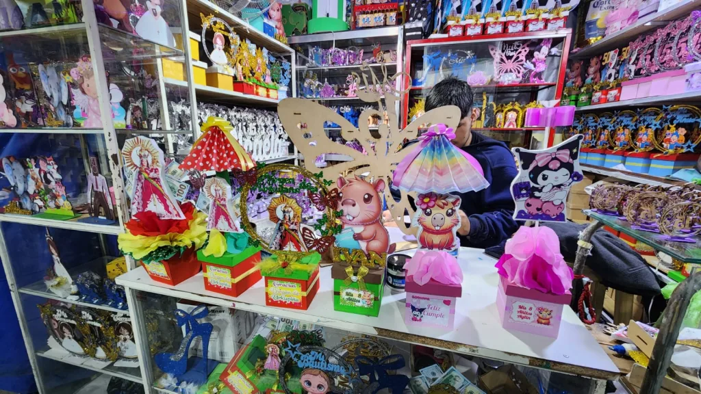En el anexo del mercado, en Pasaje Miramar 433, hay múltiples opciones en cotillón, adornos para tortas, souvenirs, centros de mesa y piñatas, entre otros productos, todos a precios accesibles.