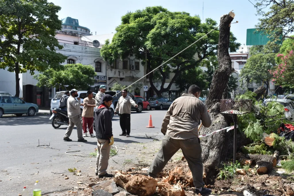 El operativo se realizó en un forestal de gran porte que presentaba una inclinación que podía generar serios inconvenientes. Similares acciones se llevaron a cabo en otros 12 árboles de la ciudad.