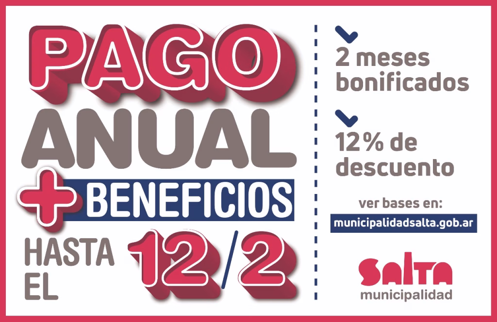 Hasta el 12 de febrero, la Municipalidad de Salta lanzó el Pago Anual de tributos que permite a los vecinos de la ciudad abonar el Impuesto Inmobiliario, la Tasa General de Inmuebles, el Impuesto a la Radicación de Automotores, la Tasa de Protección Ambiental (para automotores de más de 20 años) y la Tasa de […]