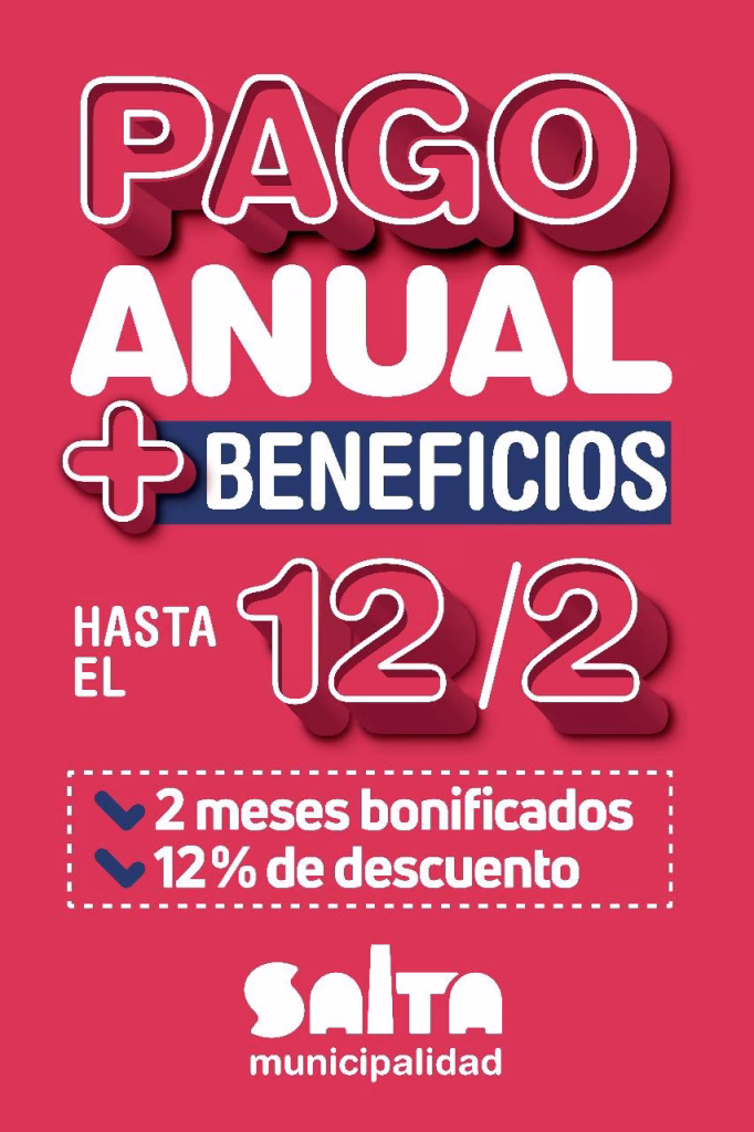 Desde ayer y hasta el 12 de febrero, la Municipalidad de Salta lanzó el Pago Anual de tributos que permite a los vecinos de la ciudad abonar el Impuesto Inmobiliario, la Tasa General de Inmuebles, el Impuesto a la Radicación de Automotores, la Tasa de Protección ambiental (para automotores de más de 20 años) y […]