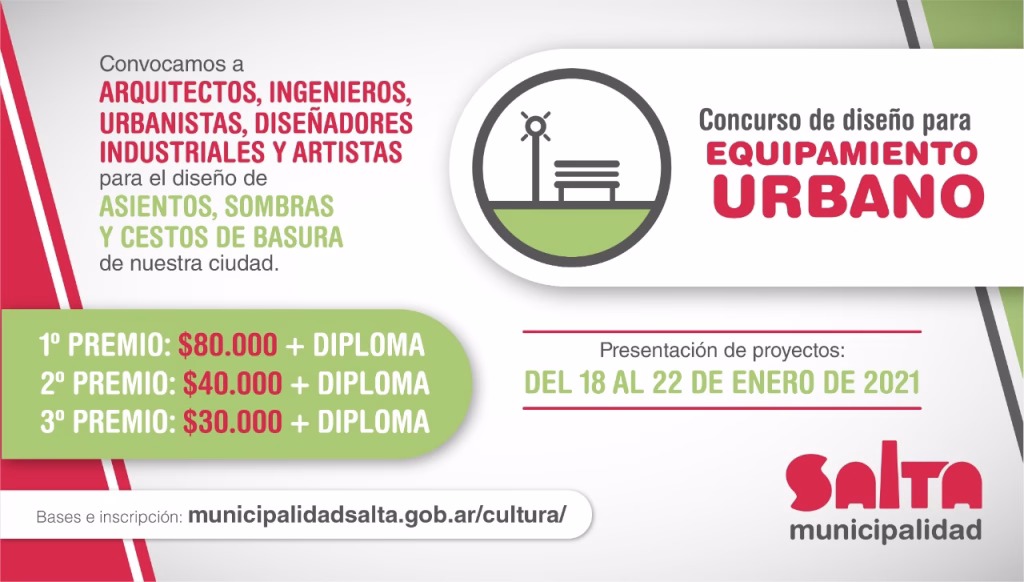 La Municipalidad de Salta recuerda que está en marcha el “Primer Concurso de Diseño para Equipamiento Urbano”, dirigido a arquitectos, ingenieros, urbanistas, diseñadores industriales y artistas de la ciudad. La presentación de los proyectos será desde el 18 y hasta el viernes 22 de enero. El certamen es organizado por la Secretaría de Desarrollo Urbano […]