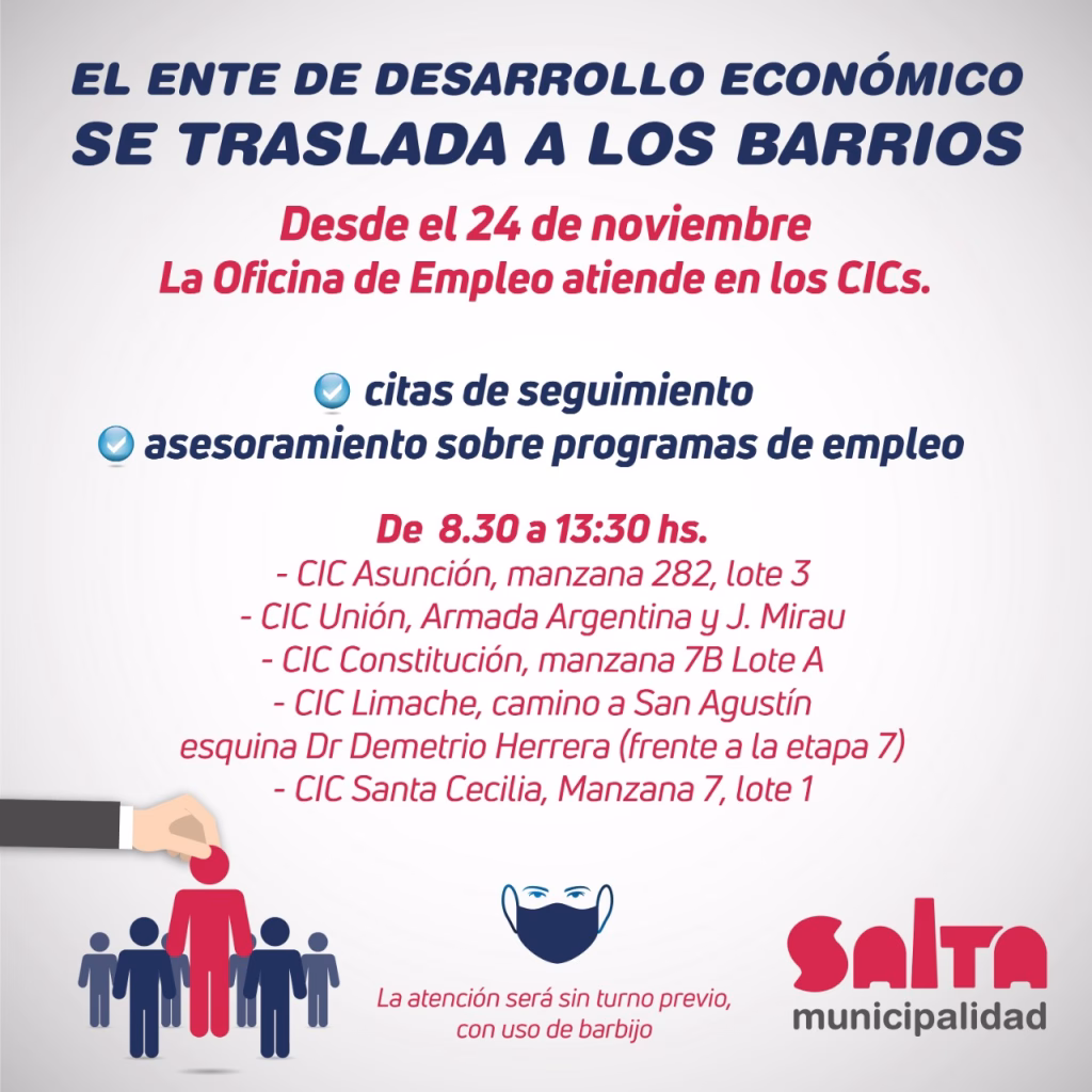 El Ente de Desarrollo Económico de la Municipalidad, a través de la Oficina de Empleo, brindará atención en cinco Centro Integradores Comunitarios de la ciudad, para acercar los servicios a los barrios. Desde el martes 24 de noviembre, se sumarán dos nuevos puntos de consulta: barrio Limache y Santa Cecilia. El personal de la dependencia […]