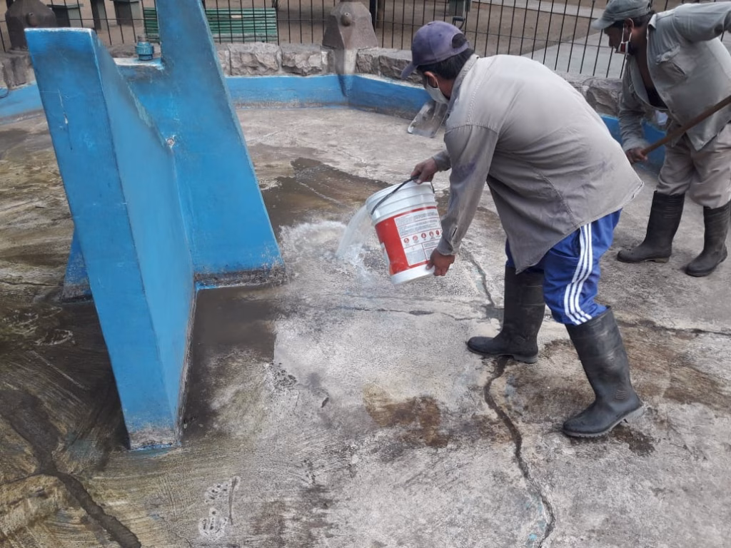Tareas de mantenimiento en plaza Alvarado