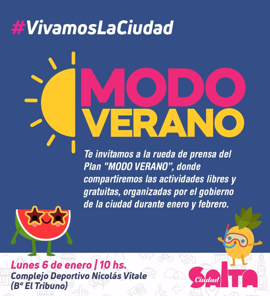 Se trata de una serie de actividades libres y gratuitas que organizó el municipio para que los salteños disfruten la ciudad en enero y febrero. La Municipalidad de la Ciudad de Salta informa que el lunes se hará el lanzamiento del Modo Verano, el programa de actividades libres y gratuitas que propone el gobierno comunal […]