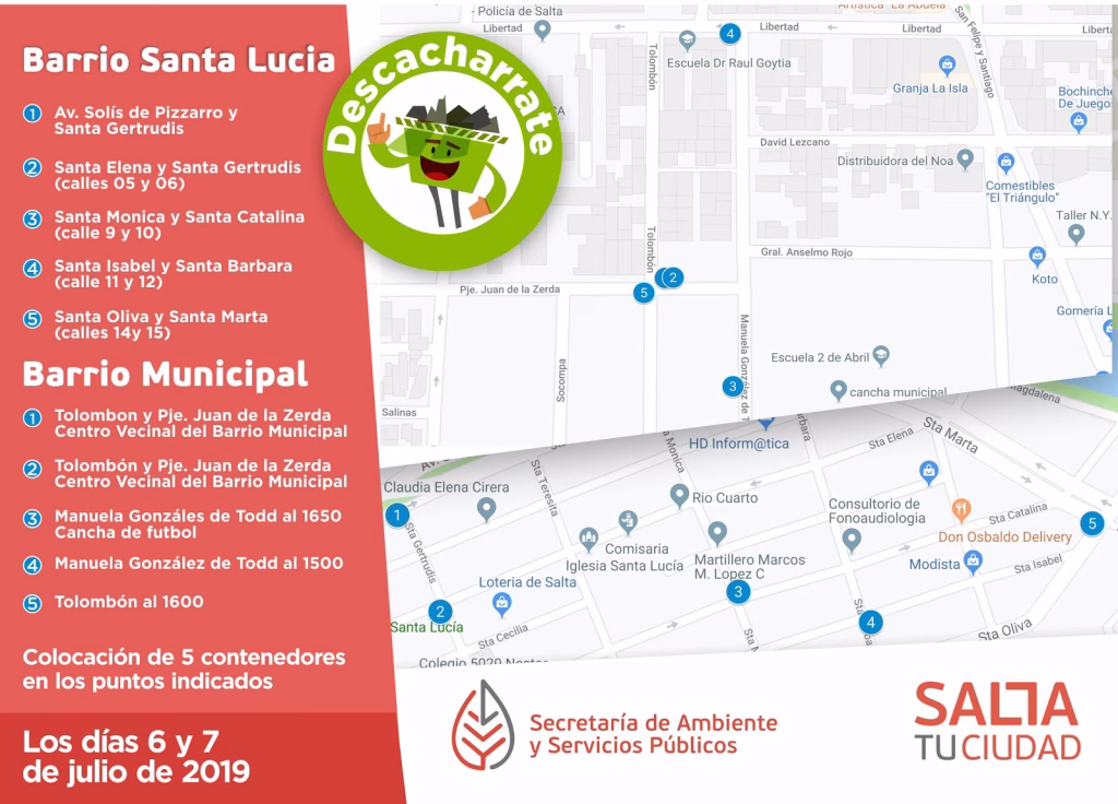 “Descacharrate”: colocarán contenedores en los barrios Santa Lucía y Municipal
