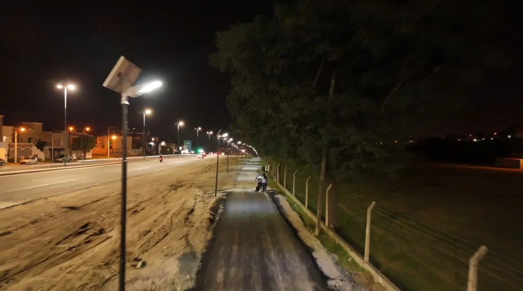 Se trata de 300 luces solares en ciclovía y 20 luces LED en estaciones saludables, cubriendo un rango de seis kilómetros aproximadamente, utilizando solo 1000 metros de cable de AP. Las nuevas luces van desde San Cayetano hasta la bajada de San Lorenzo.
