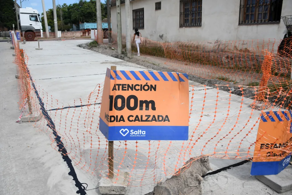 La Municipalidad de Salta ejecuta tareas de pavimentación con hormigón en la calle Reconquista. Las obras tienen como objetivo mejorar la circulación y calidad de vida de los vecinos de los barrios La Cerámica y 9 de Julio en la zona este.