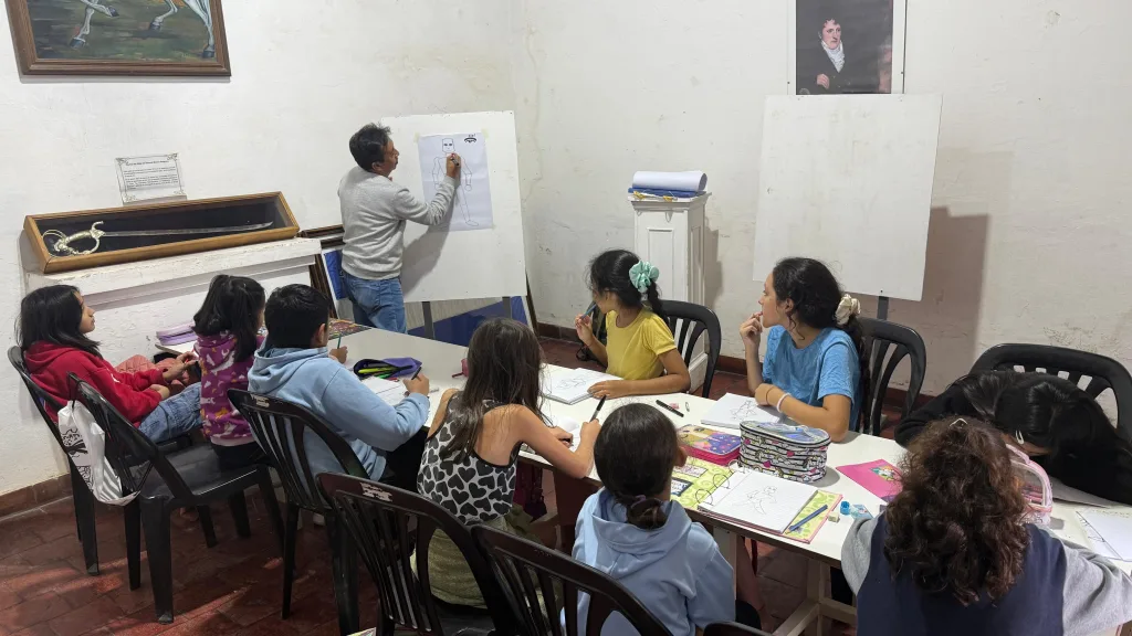 La propuesta artística municipal está destinada a niños y adolescentes desde los 8 años, donde el dibujo y la narración se convierten en herramientas para imaginar, crear y expresarse. Se dicta los lunes en la Casona de Castañares en dos comisiones: de 15 a 16:30 hs y de 16:30 a 18 hs, a cargo del Prof. Felipe Mendoza.