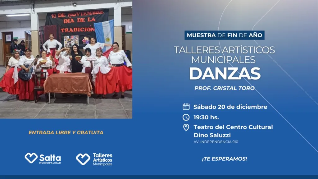 Tendrá lugar el sábado 20 de diciembre desde las 19:30 horas, en el Distrito Cultural Dino Saluzzi. La propuesta estará a cargo de la profesora Cristal Toro e incluirá presentaciones de danzas folclóricas, árabes, ritmos latinos y yoga. La entrada será libre y gratuita.