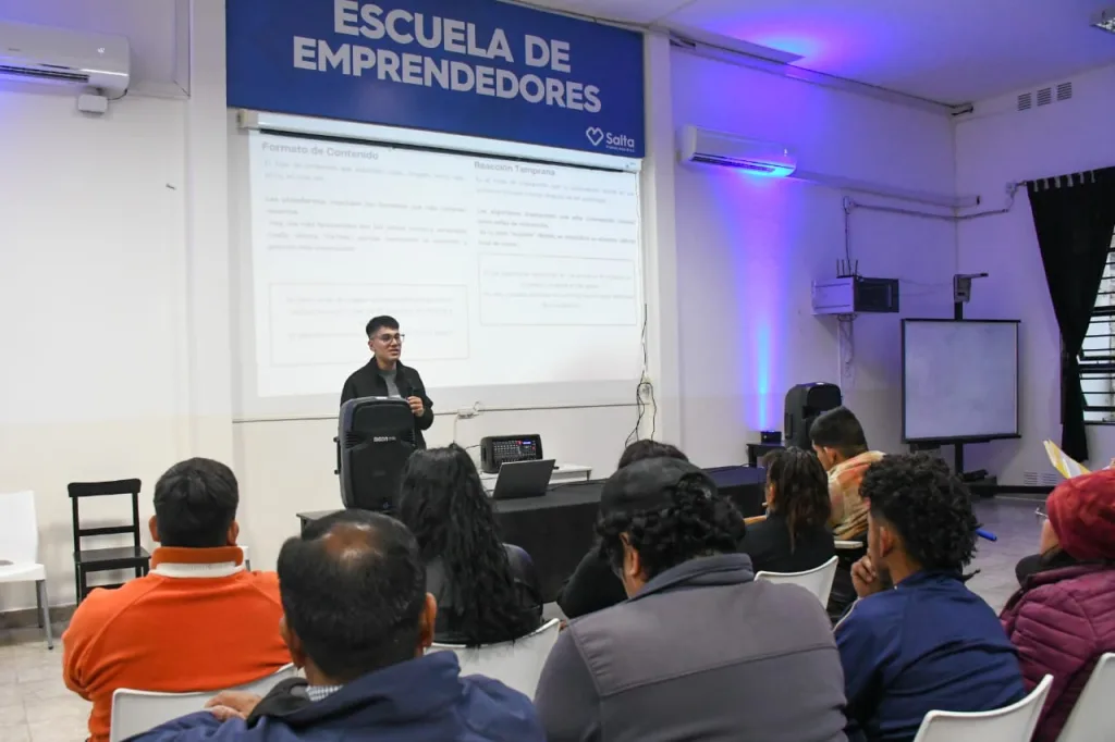 Las clases empezaron esta semana en la Escuela de Emprendedores. Durante dos meses, los participantes aprenderán todo lo relacionado a IA, redes sociales, inglés y Canva. La formación cuenta con el aval del Ministerio de Educación de la Provincia.