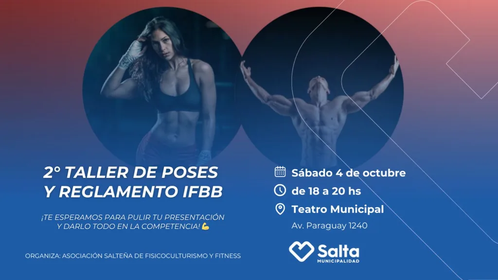 Este sábado 4 de octubre de 18 a 20 horas, se llevará adelante en Av. Paraguay 1240 el segundo taller obligatorio de poses y reglamento IFBB, para los atletas que participarán en la Copa Fox. La entrada es gratuita y los cupos son limitados.