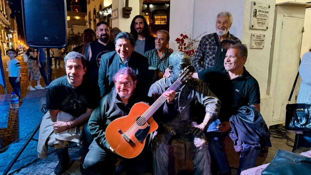 Anoche se rindió homenaje al maestro del folclore frente a la escultura que recuerda su memoria, en la esquina de Caseros y Buenos Aires. El encuentro contó con la presencia de destacados artistas y de la Banda Municipal “25 de Mayo”.