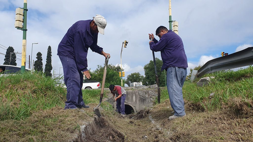 Los trabajos consisten en retiro de sedimentos acumulados que no permitían el normal drenaje del agua de lluvia. Las tareas comprenden 1.300 metros lineales en ambos sentidos del sector de las colectoras.