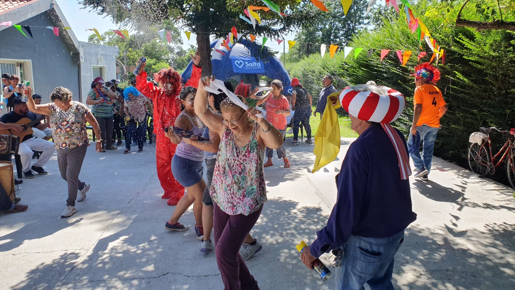 Vecinos de la zona sur festejaron el jueves de compadres en el dispositivo municipal del lugar. Durante el encuentro, los asistentes compartieron un refrigerio, jugaron con lanza nieves y bailaron junto al grupo “Dos de copas”.