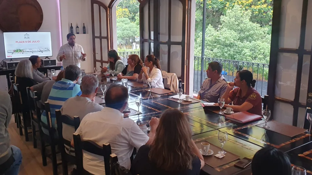 Durante el encuentro realizado, esta tarde, en el restaurante Adobe, los presentes trataron diferentes temas sobre las obras de refacción, restauración y puesta en valor de la plaza histórica.