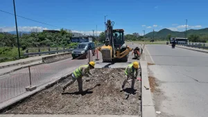 Los trabajos se están desarrollando en el sentido norte – sur, pasando la rotonda de ingreso al barrio Santa Clara de Asís. En el lugar se procedió a demoler la placa dañada para a posterior colocar el nuevo hormigón. Se solicita circular con precaución.