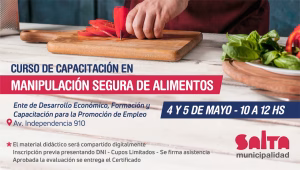 La próxima semana se realizará un curso de Manipulación de Alimentos, dictado por el área de Bromatología de la Subsecretaría de Espacios Públicos, en el