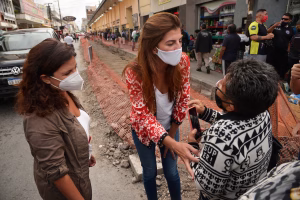 La intendenta de la ciudad, Bettina Romero, recorrió calle Ituzaingó entre San Martín y Urquiza, zona en donde operarios de la Municipalidad descubrieron estructuras de