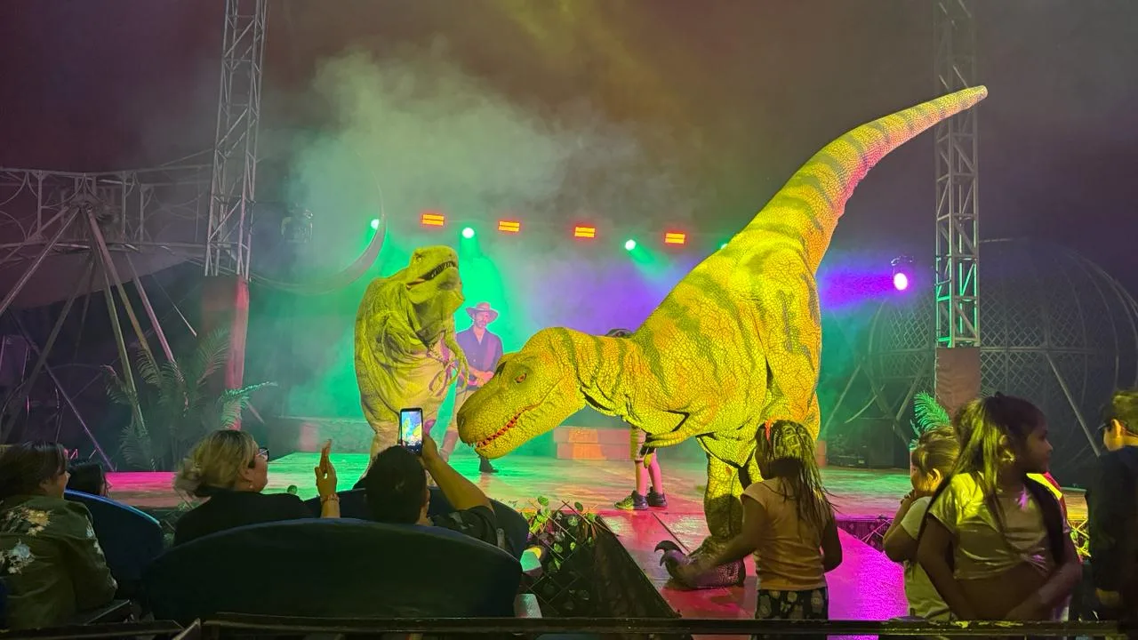El Circo de los Dinosaurios se presenta en la gran carpa instalada en el Paseo Libertad y fue declarado de interés cultural por el municipio, al tratarse de una propuesta socioeducativa que integra destreza circense, tecnología, iluminación y efectos especiales, con un elenco profesional de artistas.