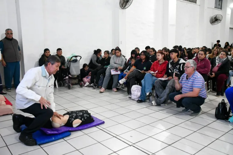 La capacitación estuvo a cargo del Dr. Bernardo Biella y se llevó a cabo en O'Higgins 1670. El objetivo es que la comunidad esté preparada para realizar maniobras de reanimación cardiopulmonar y atención de emergencias.