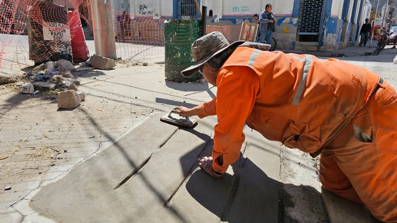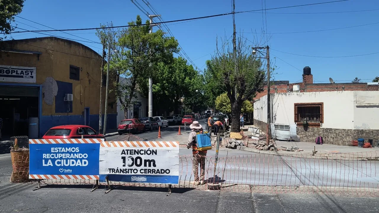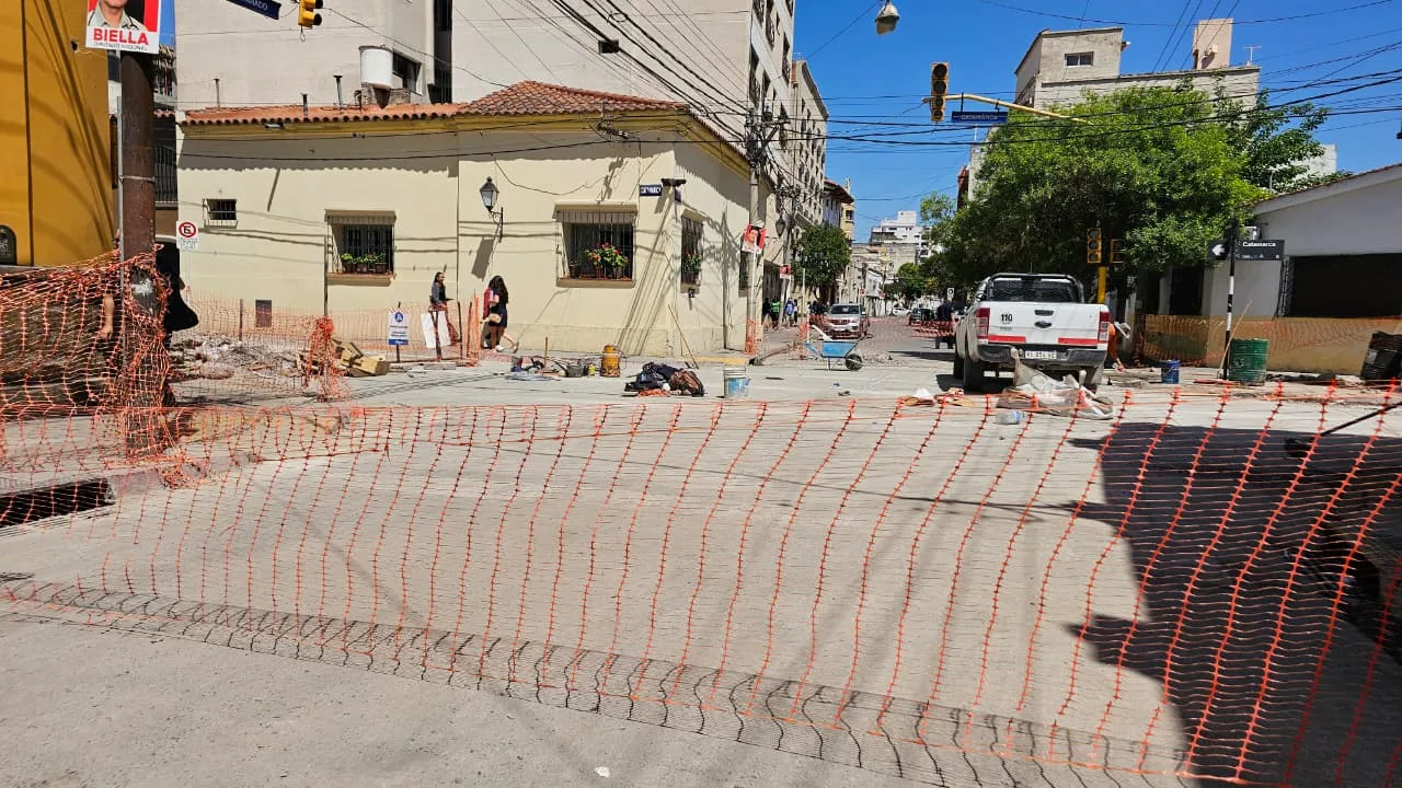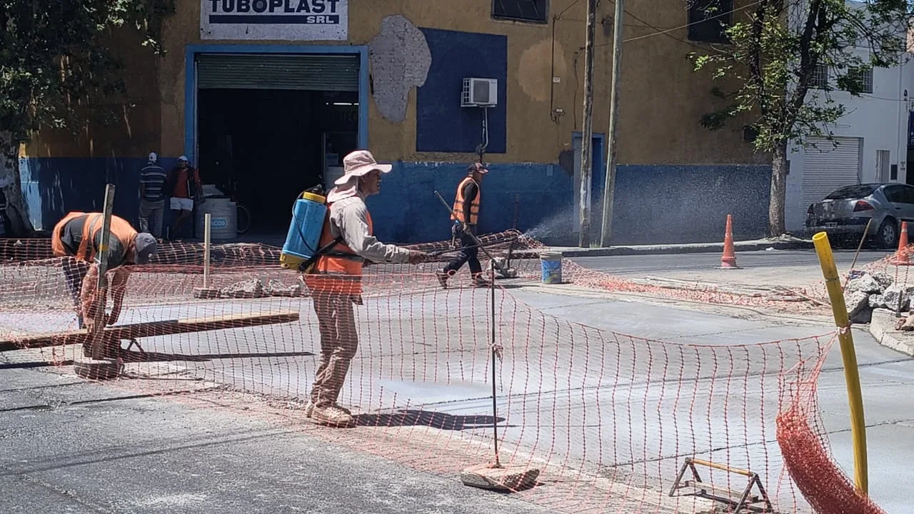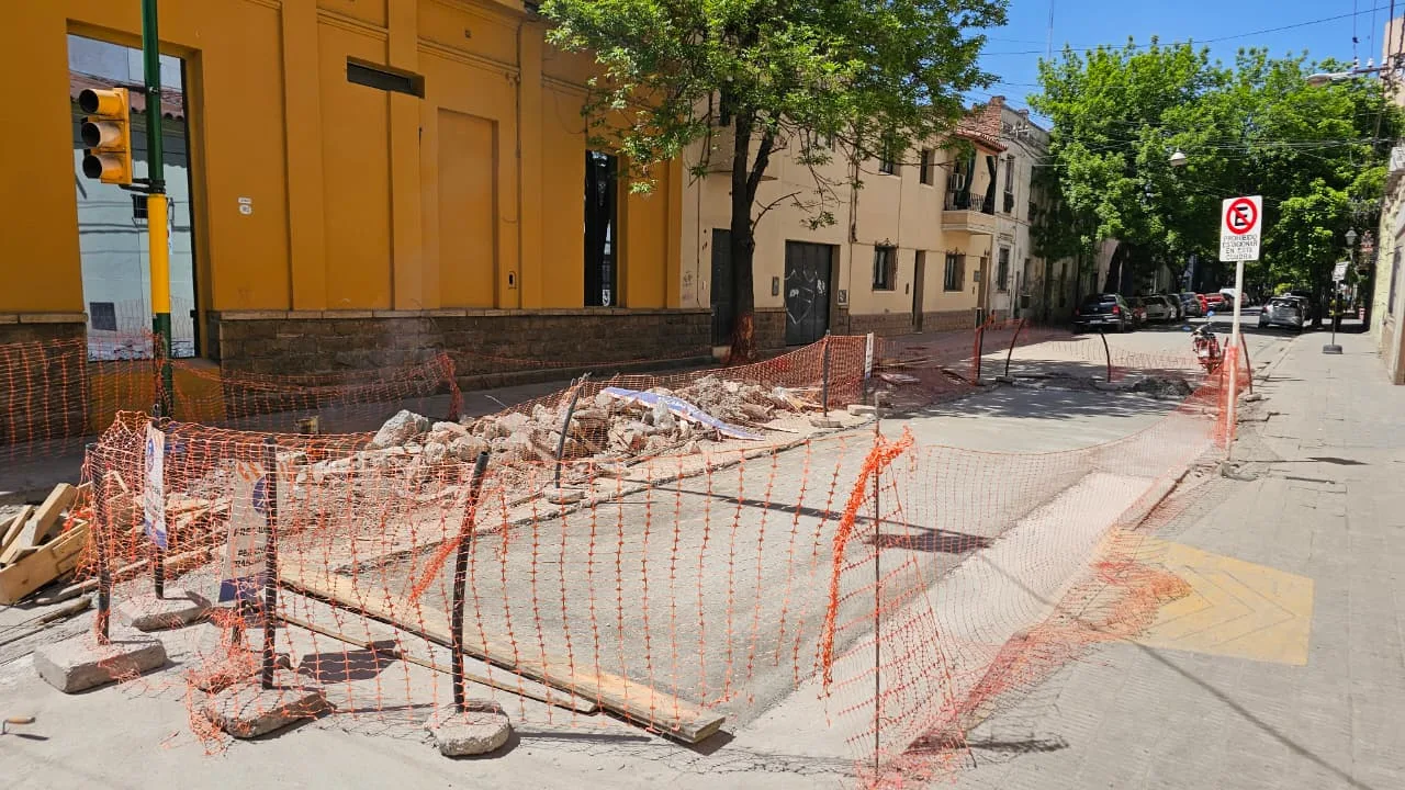 En el caso de Catamarca y Alvarado, las tareas se están desarrollando en la bocacalle donde se tuvo que recambiar la cañería del desagüe pluvial que presentaba pérdidas, lo que generó el hundimiento de la calzada.