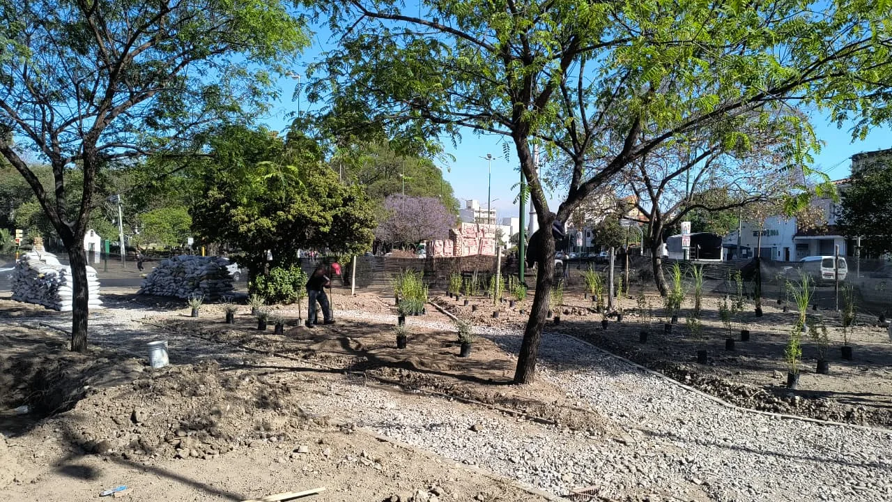 En el marco del plan de recuperación de espacios verdes, la Municipalidad se encuentra trabajando en los umbrales ubicados en la intersección de las avenidas San Martín y Yrigoyen.