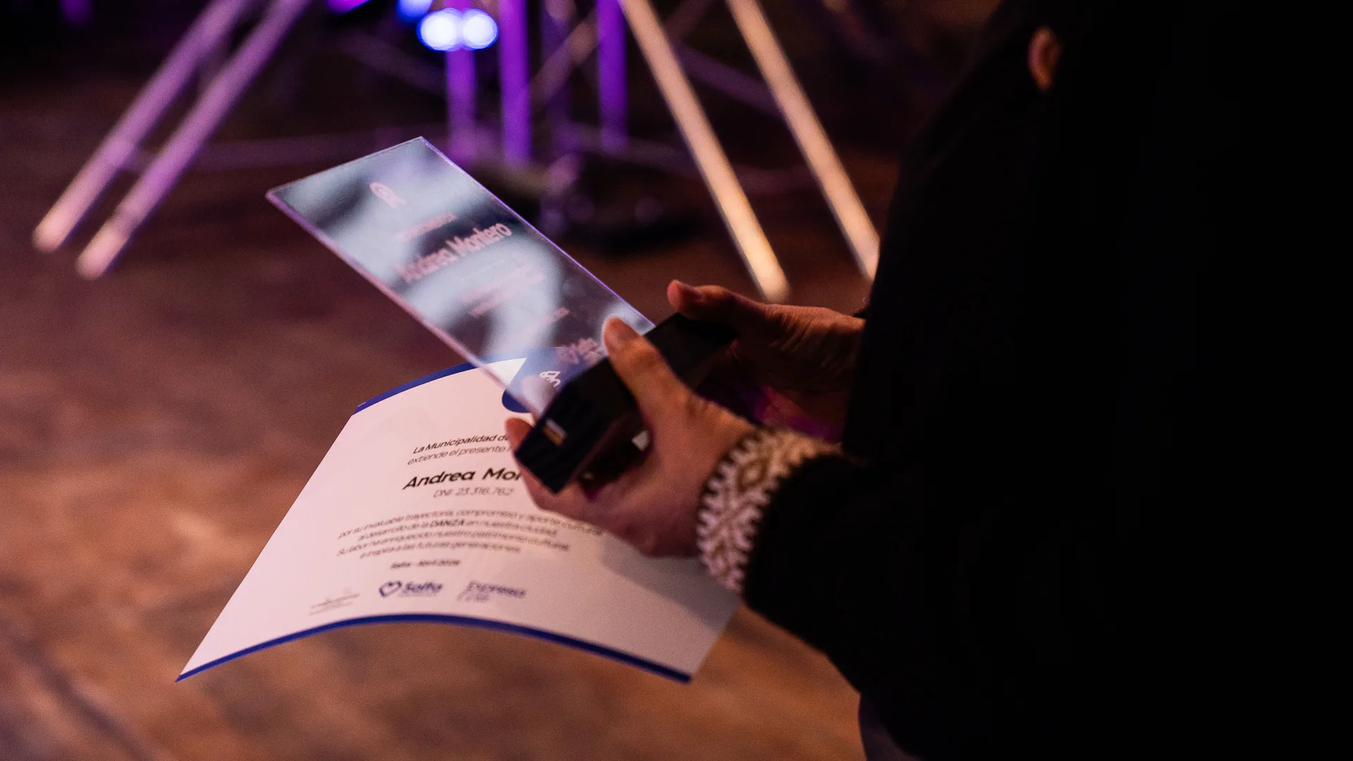 Uno de los momentos más significativos de la noche fue la entrega de reconocimientos a destacadas figuras del ámbito artístico local, en el marco del Día Mundial del Arte.