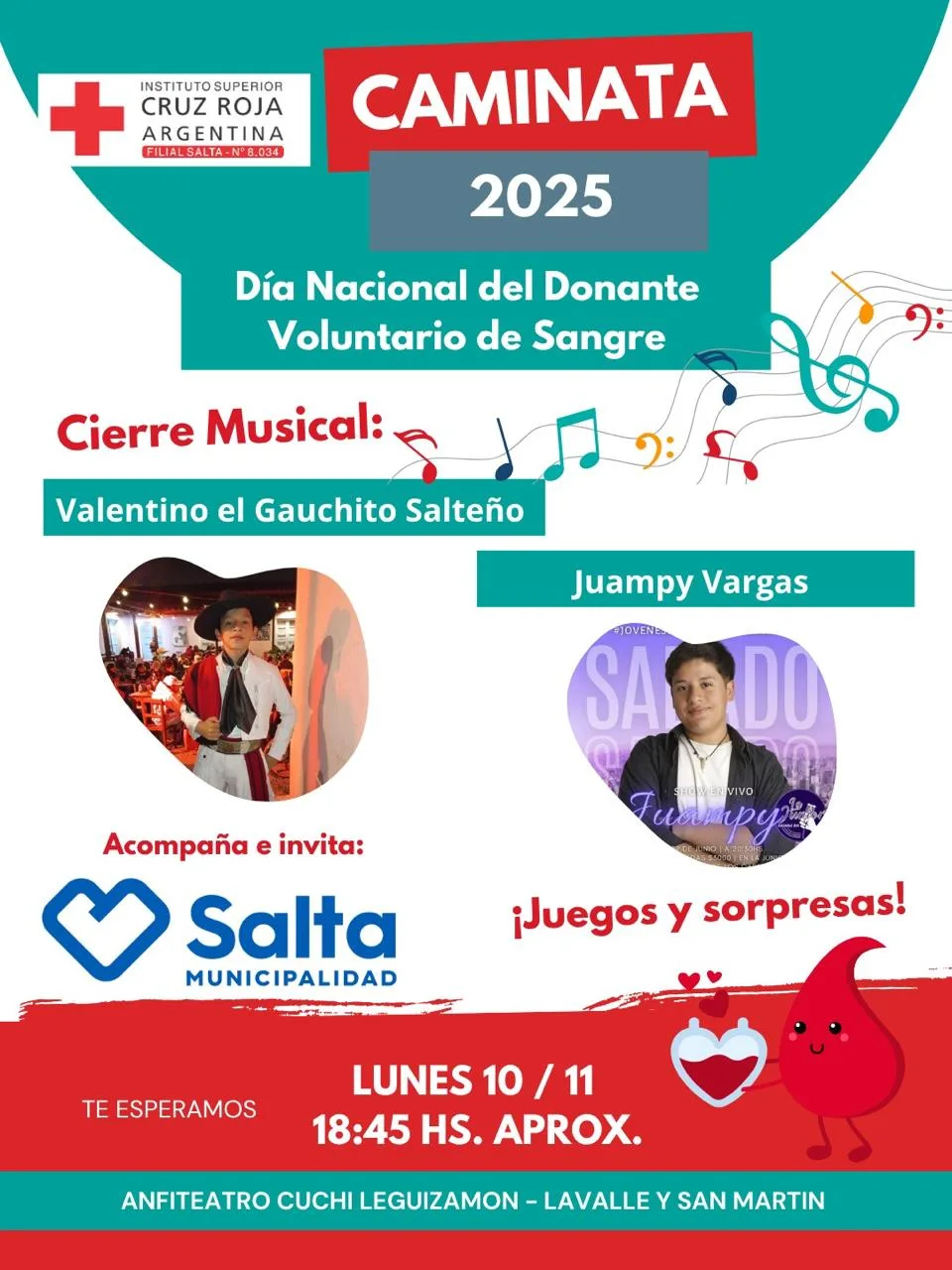 La Municipalidad de Salta acompaña la Caminata 2025, organizada por el Instituto Superior Cruz Roja Argentina Filial Salta, en el marco del Día Nacional del Donante Voluntario de Sangre.