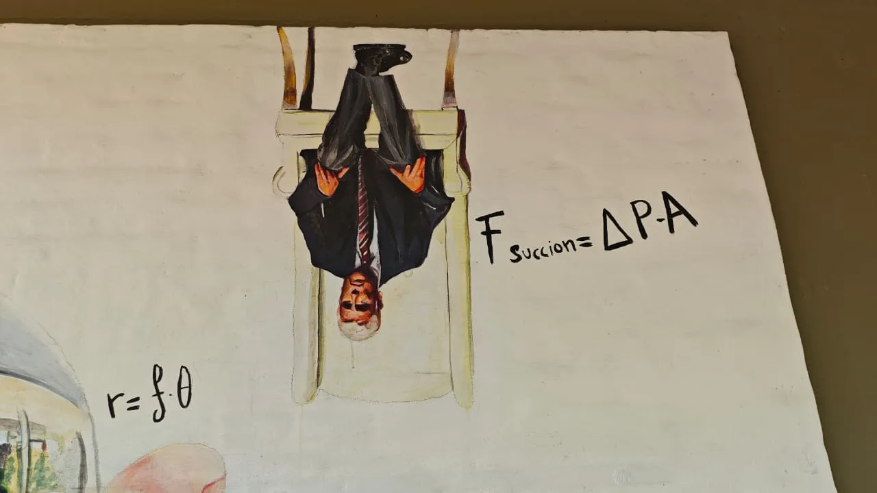 El mural, ubicado en una de las paredes de la Facultad de Ciencias Exactas, muestra un retrato del profesor Córdoba acompañado de fórmulas y símbolos relacionados con la física, además de elementos que reflejan su manera única de enseñar: una bola de cristal y una sandía en explosión, alusiones a los ejemplos cotidianos y experimentales que utilizaba para explicar conceptos complejos.