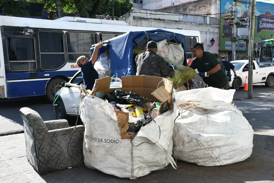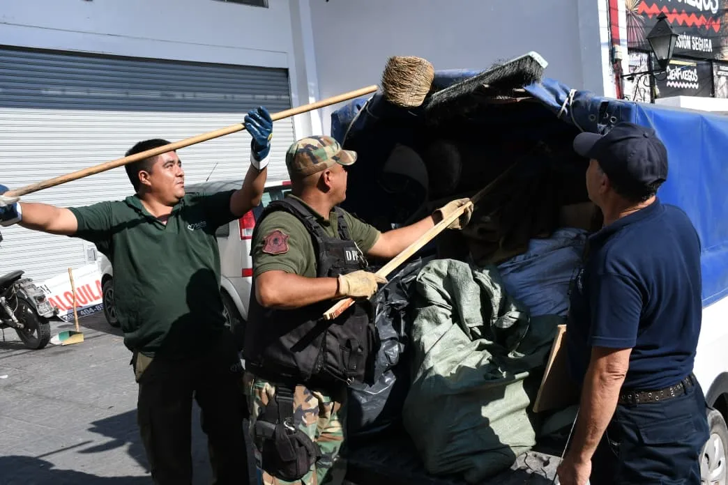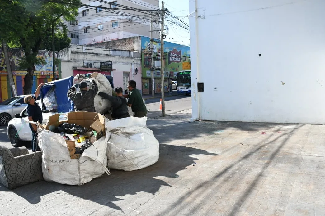El operativo se realizó en la calle Pellegrini al 400 donde un grupo de personas aprovechó un espacio amplio de la vereda para acumular diversos residuos, lo que generaba la proliferación de insectos y malos olores.