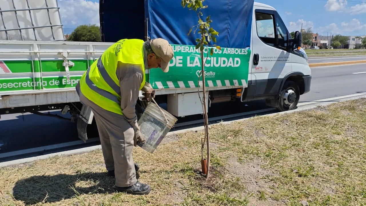En el marco del plan Vial Zona Sur, la Municipalidad junto a la empresa encargada de la obra dispuso la plantación de nuevos árboles a lo largo de la avenida Ex Combatientes de Malvinas.