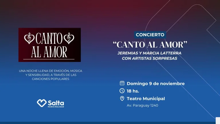 La Municipalidad de Salta, a través de la Agencia de Cultura Activa, acompaña e invita a la comunidad a disfrutar del concierto “Canto al Amor”.
