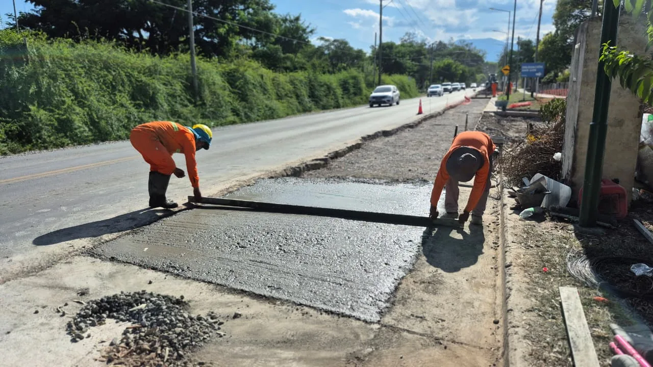 Los trabajos se efectúan desde la calle Cerro Negro hasta Cerro Crestón donde no sólo comenzó la colocación del nuevo concreto sino que también se hará un recambio de rejas metálicas para desagüe pluvial.