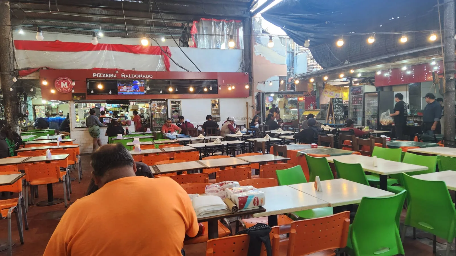 En el mismo patio de comidas en pizzería “Maldonado” encontrarán las siguientes promociones: pizza muzarella grande con gaseosa (primera marca) 17.500, pizza especial grande con gaseosa (primer marca) $20.500, milanesa con guarnición $30.000, milanesa napolitana para cuatro personas $33.0000, pollo entero con fritas o arroz $24.000, costeletas con guarnición para dos personas $10.000.