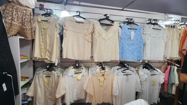 En plan de regalos también se pueden encontrar en el predio polleras largas, varios colores $8.500, remeras varios colores $5.000, jeans dama de $10.000 a $18.000, blusas varios colores $22.000 y $25.000, pantalones palazos animal print $22.000, pantalones con franjas laterales $22.000, conjunto mamá de lino $35.000, calzas chupín $$9.000 y $10.000, calzas Oxford y rectas $12.000, remeras de $7.000 a $12.000, pantalones de morley $12.000, pantalones cargo dama $11.000, pantalones dama $11.000, pijamas de verano $9.000, remeras deportiva dama a $6.000, $7.000 y $9.000, ojotas de $5.000 a $10.000.