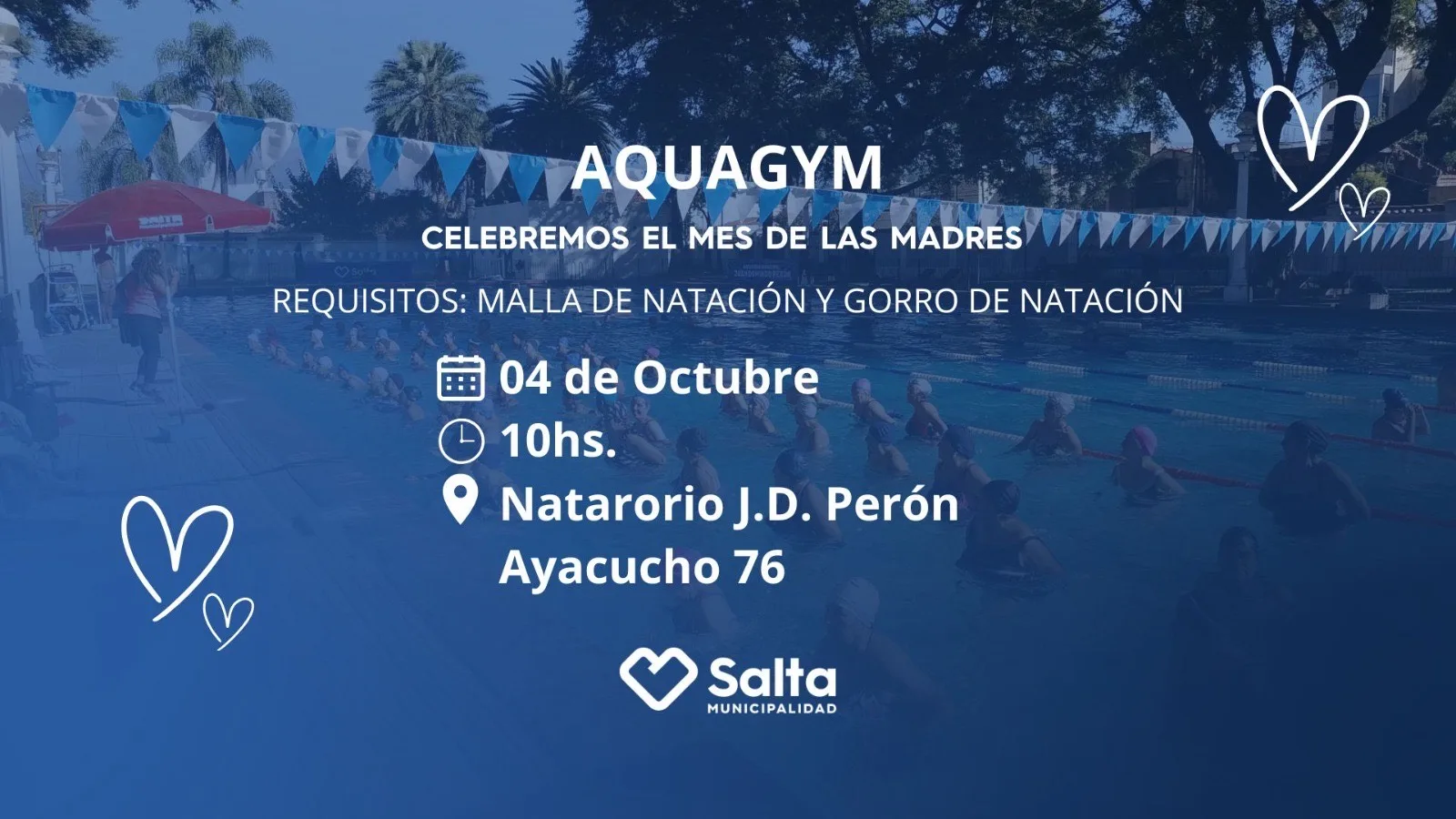 Se llevará a cabo el 4 de octubre en el natatorio J.D. Perón a partir de las 10. La actividad es totalmente gratuita y, si bien está dirigida a adultos mayores, está abierta a todo público.
