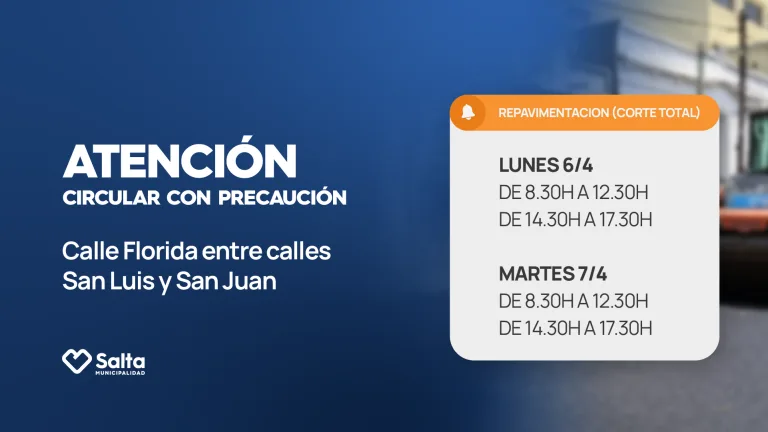 En este marco, se informa que este lunes 6 y martes 7 habrá un corte total del tránsito en la calle Florida debido a obras de repavimentación.