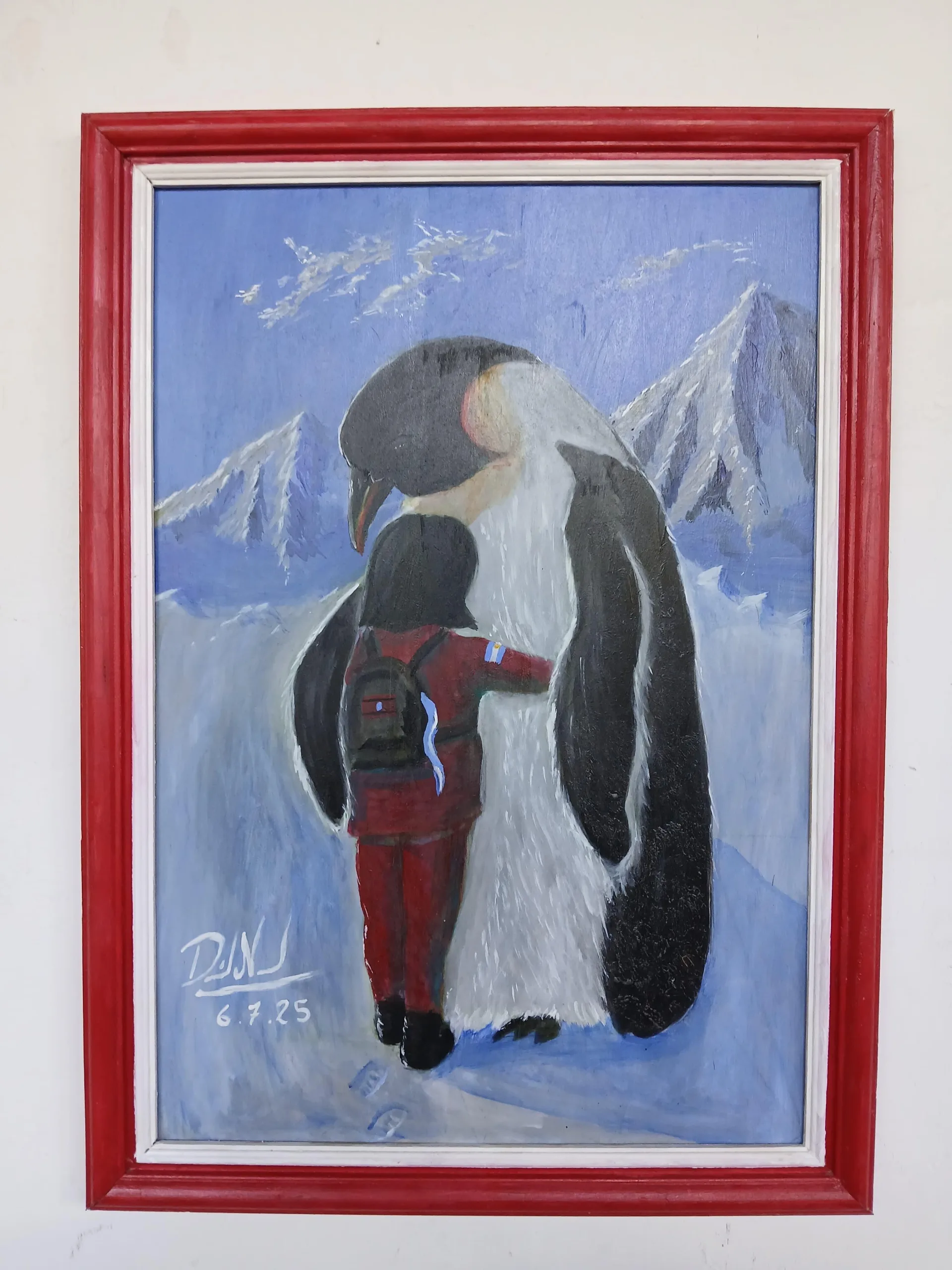 La exposición reúne 15 obras pictóricas originales del artista plástico y psicólogo salteño Héctor Orlando Díaz Nina, quien desarrolla una línea de investigación centrada en la identidad, la bicontinentalidad y el vínculo histórico de Argentina con el continente blanco.