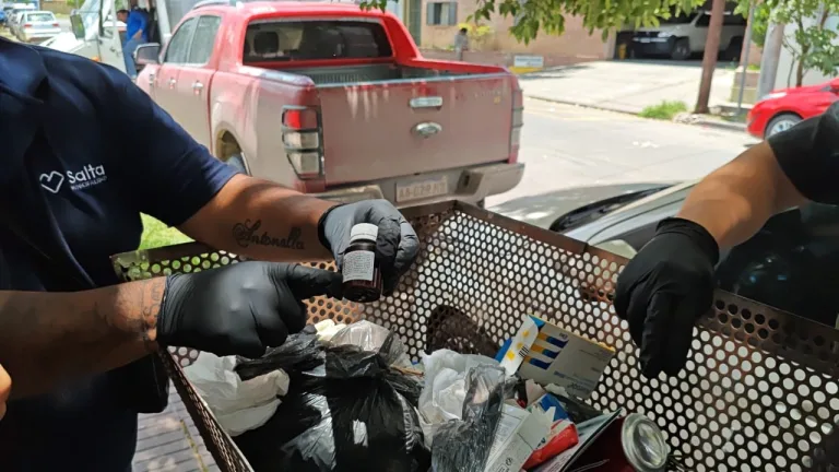 El operativo se llevó a cabo en la calle Los Fresnos, ya que personal del centro médico arrojaba medicamentos y restos de productos patológicos, a la vía pública.