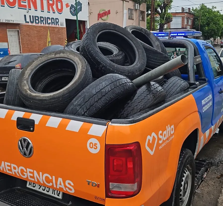 También se retiraron una suma considerable de neumáticos de la plaza Gurruchaga y canales aledaños. Estos tapaban las salidas, lo que produjo el anegamiento en la zona.