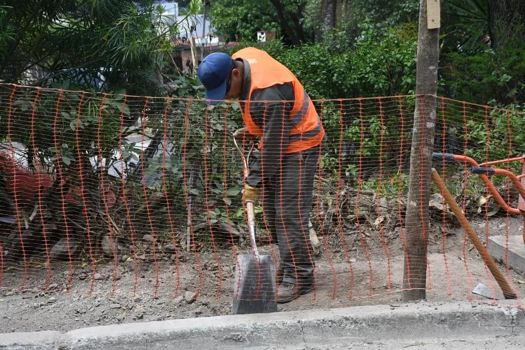 En el lugar, se dio inicio a las tareas de demolición de la vereda y caminería en el sector noreste, continuando posteriormente con el colado de hormigón peinado, ejecutado con su correspondiente proceso de curado adecuado.