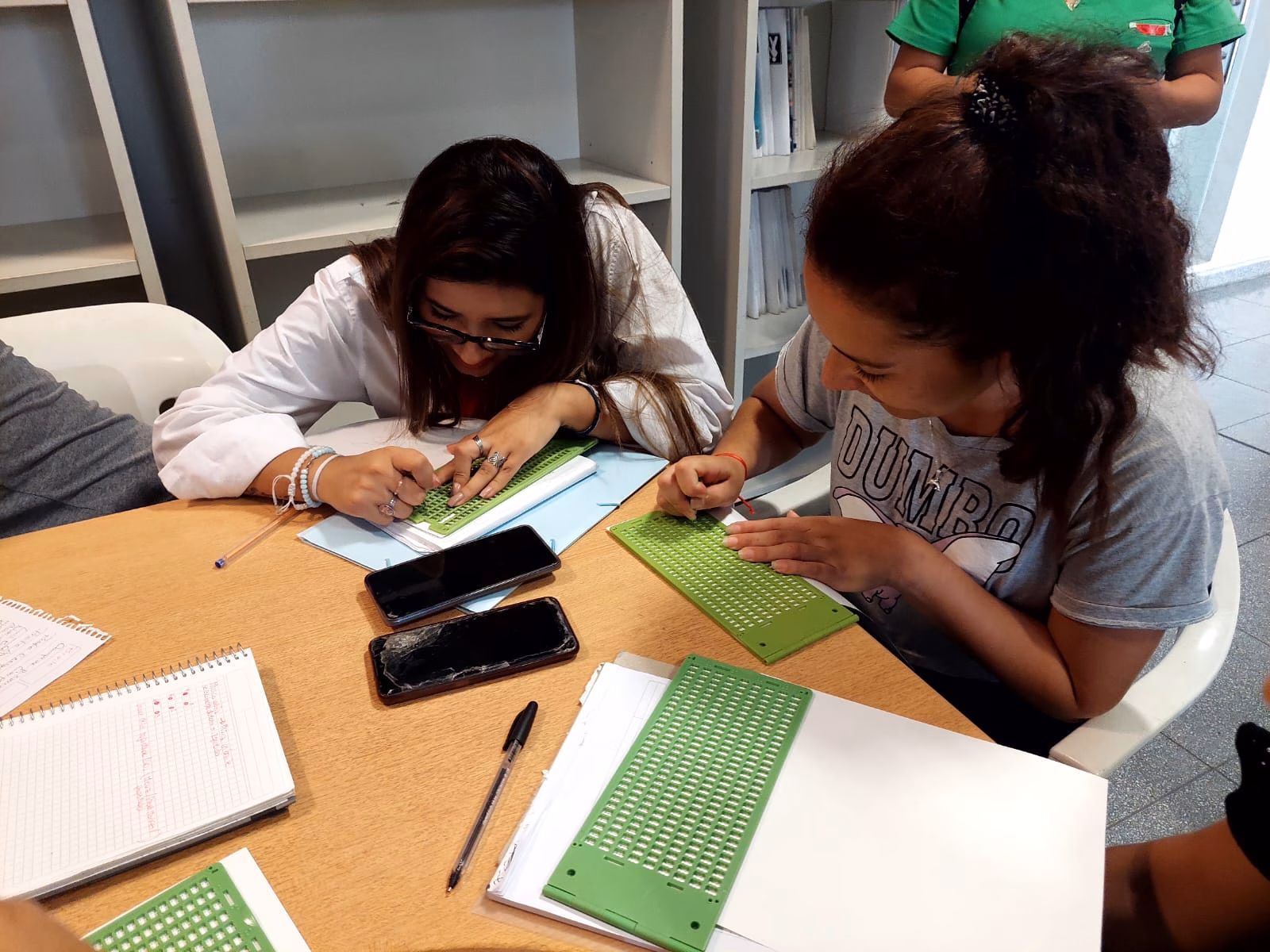 Bajo la guía de los docentes Agustín Quevedo y Ezequiel Frías, la Dirección General de Discapacidad de la Municipalidad, brindó a los estudiantes conocimientos sobre la historia y principios del sistema braille; alfabeto, números y signos básicos; normas de escritura y lectura y prácticas guiadas con materiales específicos, como el kit de braille (pizarra y punzón).