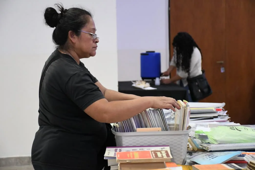 La actividad se desarrolló en dos turnos para facilitar la participación: de 9 a 12 y de 16 a 20 horas. Durante la jornada se entregaron libros, apuntes y cartillas correspondientes a diferentes carreras y años de cursado.