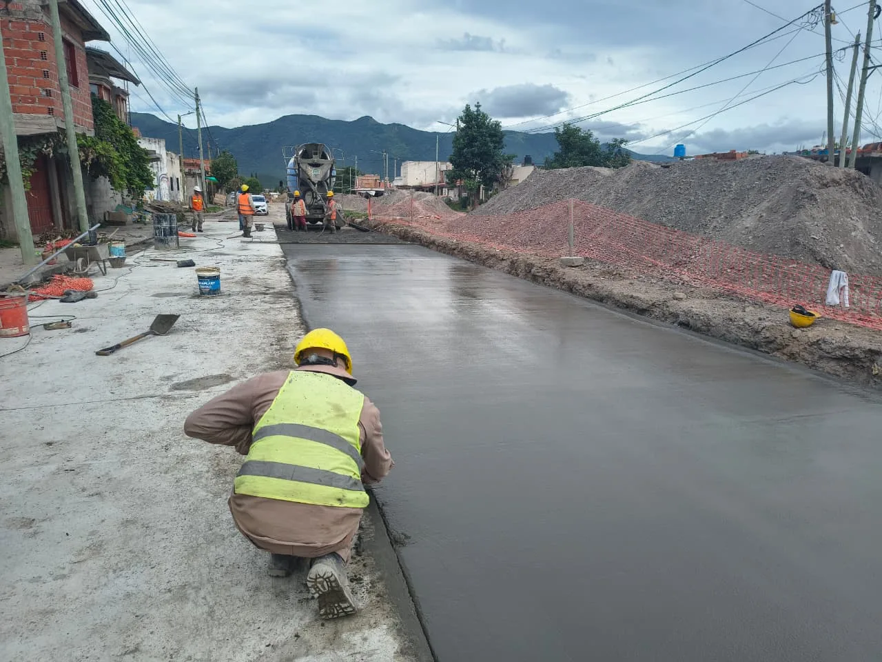 En el marco del Plan de Recuperación de Calles, la Municipalidad de Salta avanza con la construcción de nuevas placas de hormigón en la avenida Ángel Vargas, más precisamente a la altura de los barrios Juan Calchaqui y Democracia.