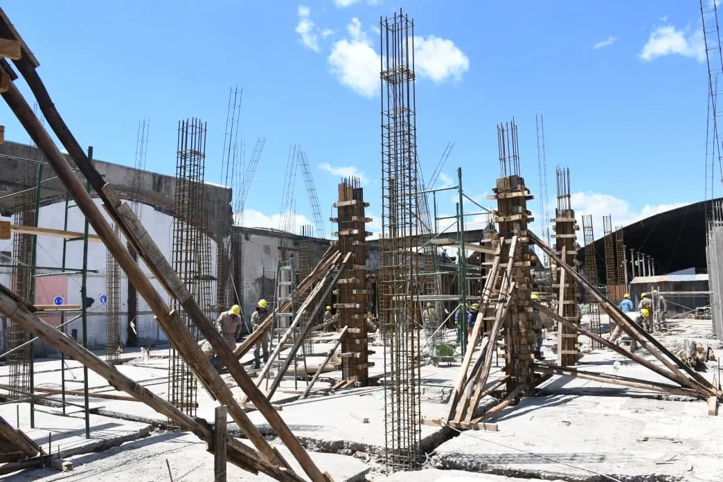 Paralelamente otro equipo importante trabajó en los cimientos fundacionales y se avanzó de buena forma. El arquitecto Joel Colque Ávila, inspector de la obra de refacción del mercado, indicó que “ya estamos a un 30% de lo que es la estructura resistente, que son columnas, vigas, armados de losa”, esto en la primera parte de la obra que se lleva adelante en el sector que tiene acceso por calle Urquiza.