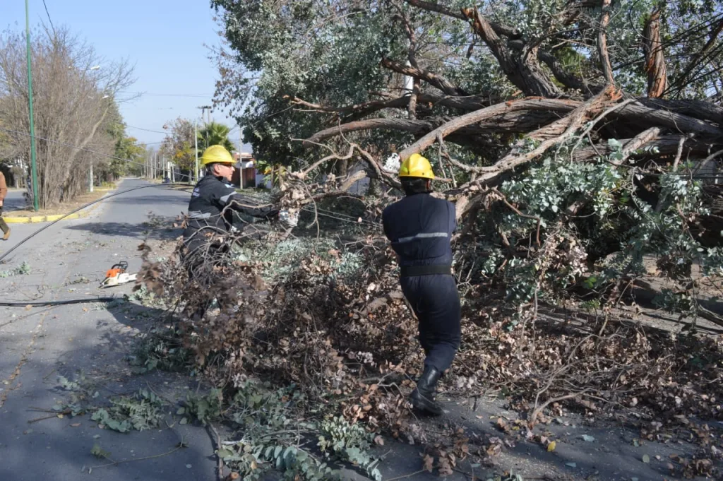 Agentes municipales retiraron un árbol de gran porte que cayó y arrastró cableado aéreo