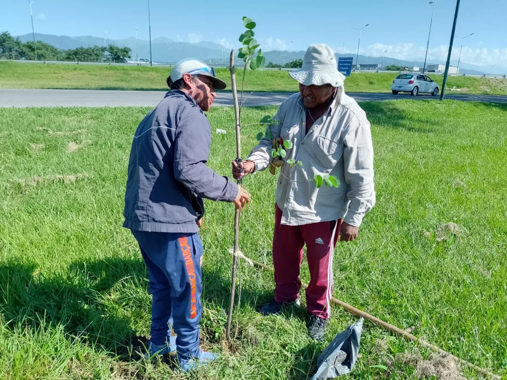 La nueva jornada de forestación se realizó como parte del plan de recuperación y mantenimiento del arbolado público. Se colocaron 5 pacarás, 5 molles, 5 lapachos rosados y 5 patas de vaca.